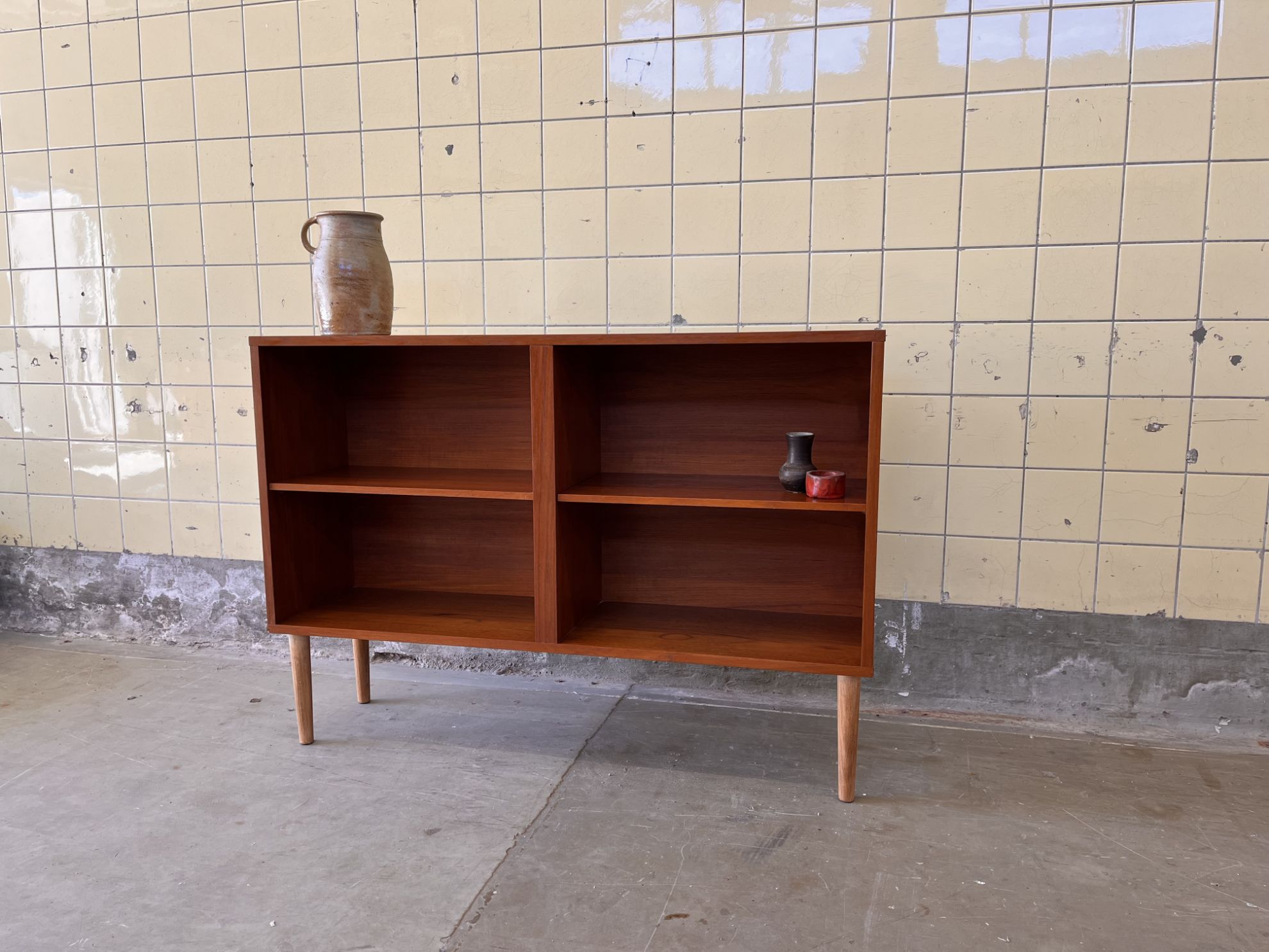 Storage Cabinet in Teak – Compact and Practical DesignThis storage cabinet is crafted in warm teak and features a clean and timeless design. Inside, it offers two shelves that can easily be removed if desired, allowing for flexible storage depending on your needs. Its compact size and balanced proportions make it a practical addition to a variety of interiors.