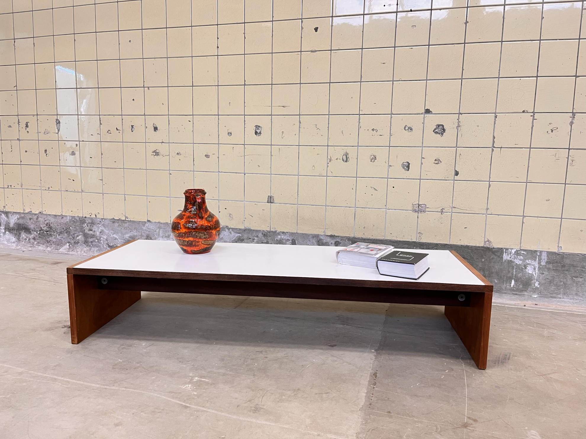 Cees Braakman coffee table for Pastoe – Iconic & refinedThis coffee table, designed by Cees Braakman for Pastoe, is a beautiful example of his clean, functional aesthetic. The piece is marked and features wooden veneer sides combined with a crisp white melamine top, giving it a light and modern appearance. Its elegant proportions and thoughtful detailing make it a timeless addition to any interior.