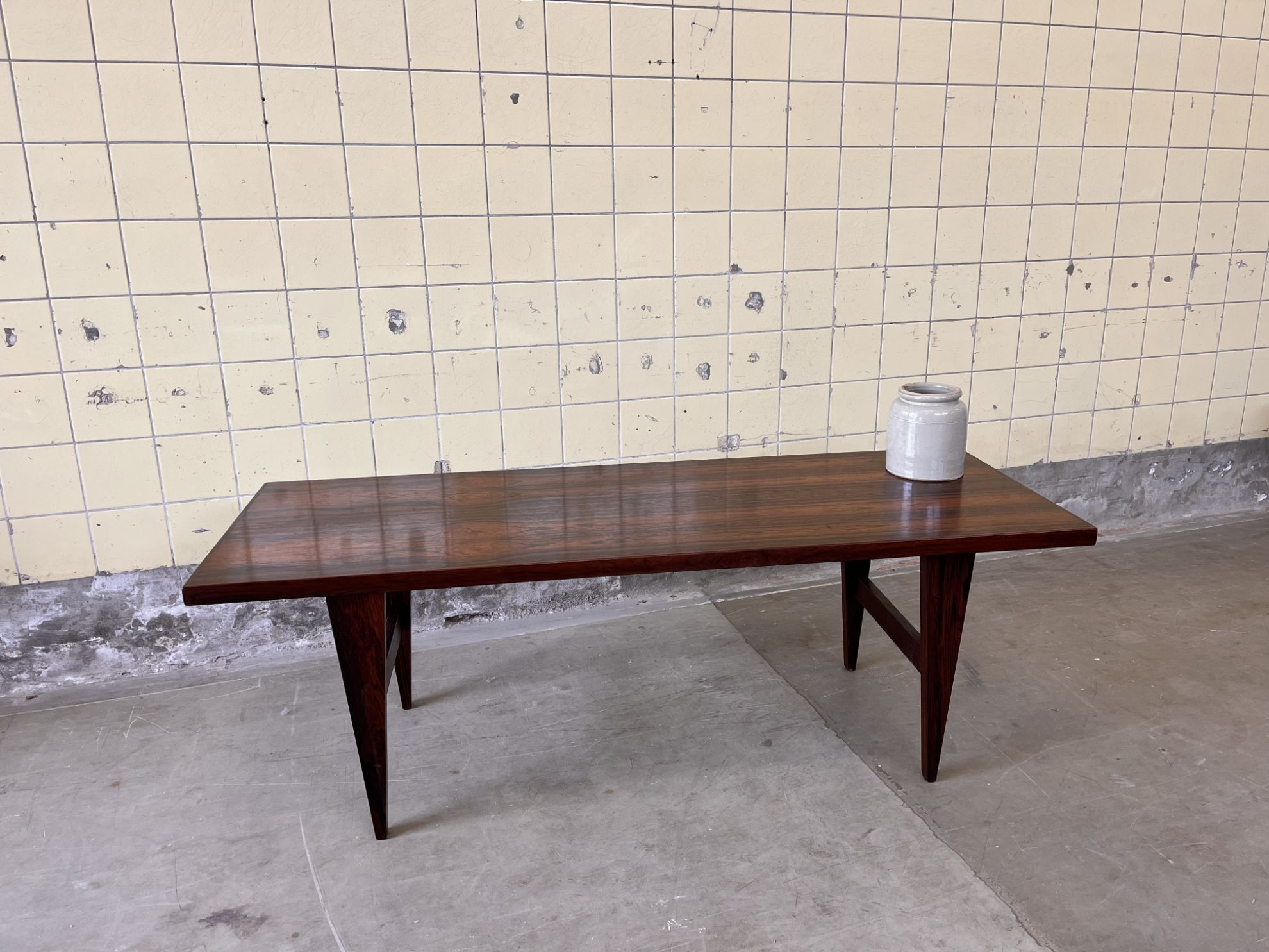 Danish Rosewood Coffee Table – Clean & Timeless DesignThis Danish vintage coffee table is crafted in beautifully grained rosewood and features a sleek and minimalist design. Its clean lines and balanced proportions give the piece a refined and timeless appearance, making it a versatile addition to a variety of interiors.